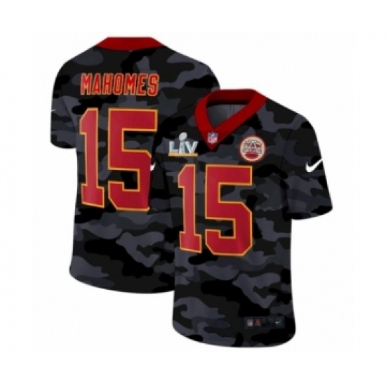Men's Kansas City Chiefs #15 Patrick Mahomes Camo Red Super Bowl LV Jersey