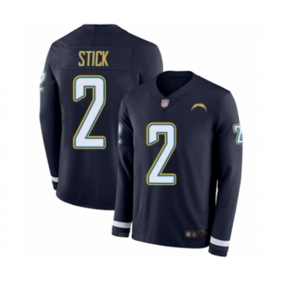 Men's Los Angeles Chargers #2 Easton Stick Limited Navy Blue Therma Long Sleeve Football Jersey