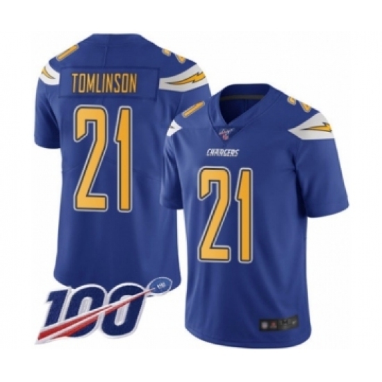 • Men's Los Angeles Chargers #21 LaDainian Tomlinson Limited Electric Blue Rush Vapor Untouchable 100th Season Football Jersey