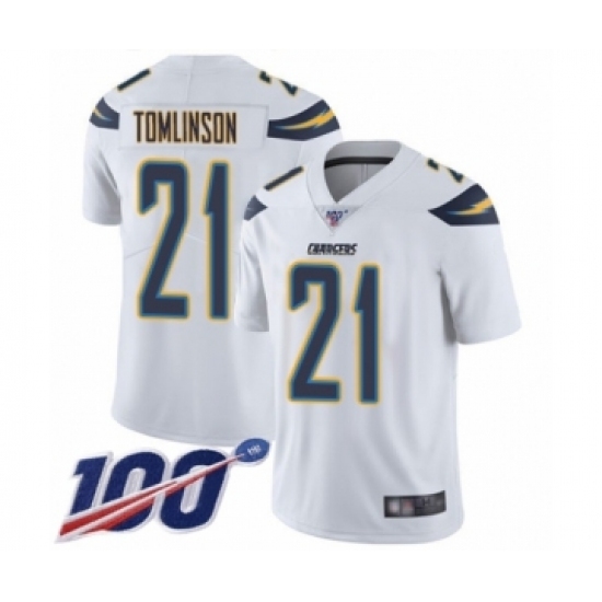 Men's Los Angeles Chargers #21 LaDainian Tomlinson White Vapor Untouchable Limited Player 100th Season Football Jersey