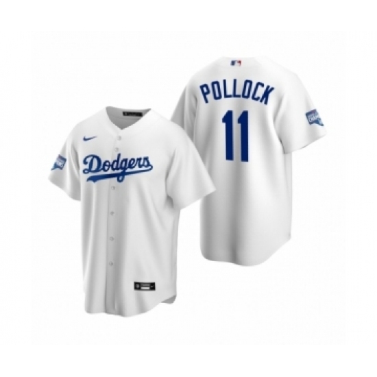 Men's Los Angeles Dodgers #11 A.J. Pollock White 2020 World Series Champions Replica Jersey