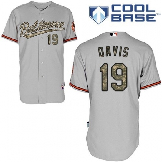 • Men's Majestic Baltimore Orioles #19 Chris Davis Replica Grey USMC Cool Base MLB Jersey