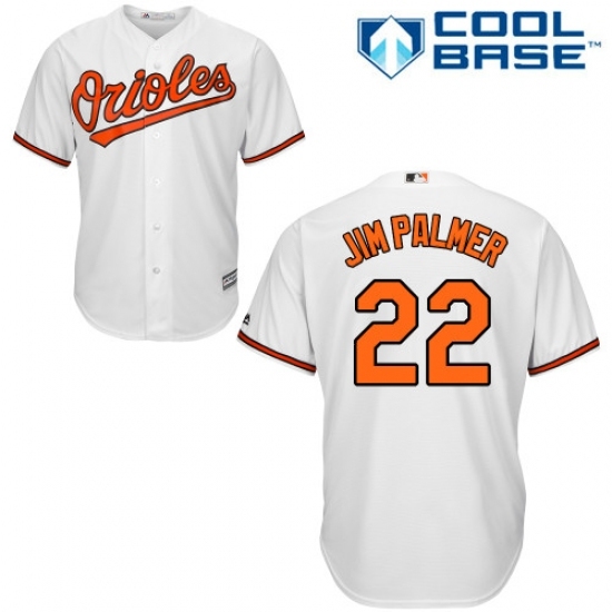 • Men's Majestic Baltimore Orioles #22 Jim Palmer Replica White Home Cool Base MLB Jersey