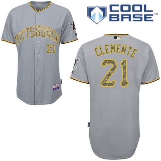 • Men's Majestic Pittsburgh Pirates #21 Roberto Clemente Replica Grey USMC Cool Base MLB Jersey