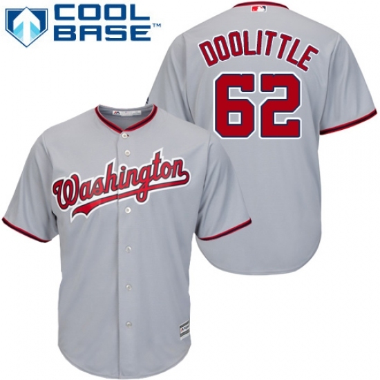 • Men's Majestic Washington Nationals #62 Sean Doolittle Replica Grey Road Cool Base MLB Jersey