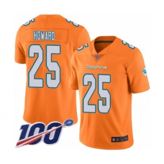 Men's Miami Dolphins #25 Xavien Howard Limited Orange Rush Vapor Untouchable 100th Season Football Jersey