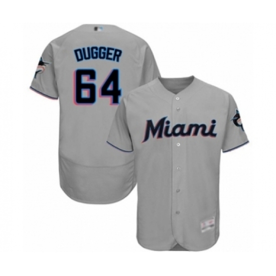 Men's Miami Marlins #64 Robert Dugger Grey Road Flex Base Authentic Collection Baseball Player Jersey