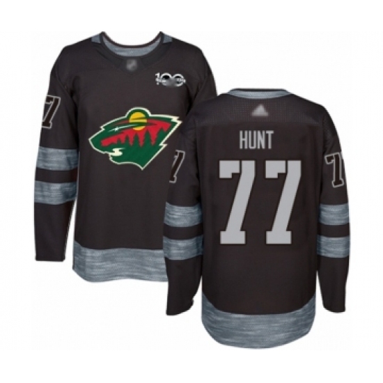 Men's Minnesota Wild #77 Brad Hunt Authentic Black 1917-2017 100th Anniversary Hockey Jersey