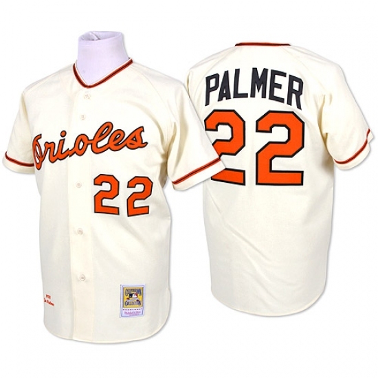 • Men's Mitchell and Ness Baltimore Orioles #22 Jim Palmer Replica Cream Throwback MLB Jersey