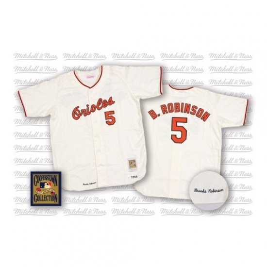 • Men's Mitchell and Ness Baltimore Orioles #5 Brooks Robinson Replica White Throwback MLB Jersey