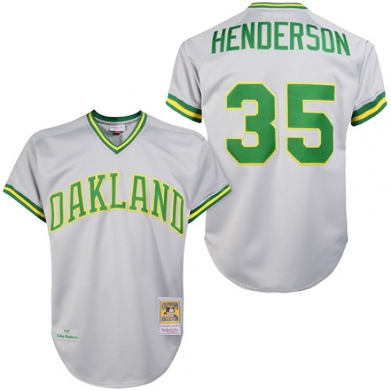 • Men's Mitchell and Ness Oakland Athletics #35 Rickey Henderson Replica Grey 1981 Throwback MLB Jersey