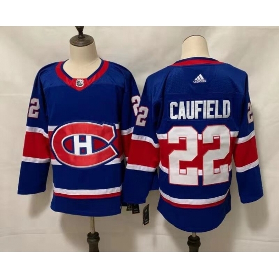 • Men's Montreal Canadiens #22 Cole Caufield Blue 2020-21 Reverse Retro Alternate Hockey Jersey