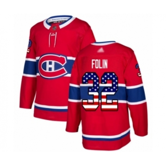Men's Montreal Canadiens #32 Christian Folin Authentic Red USA Flag Fashion Hockey Jersey