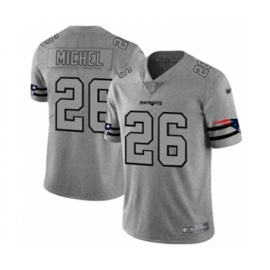 Men's New England Patriots #26 Sony Michel Limited Gray Team Logo Gridiron Football Jersey
