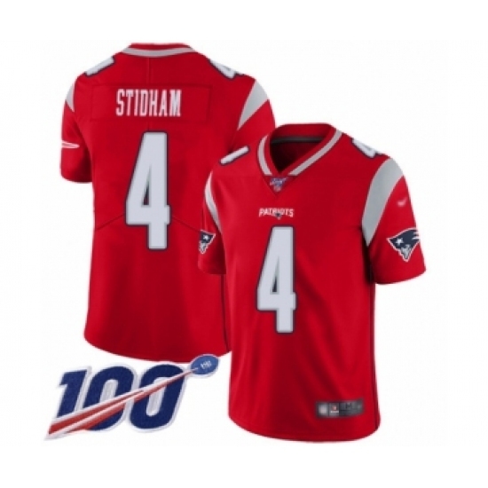 • Men's New England Patriots #4 Jarrett Stidham Limited Red Inverted Legend 100th Season Football Jersey