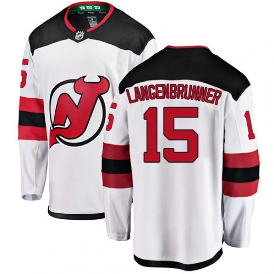 • Men's New Jersey Devils #15 Jamie Langenbrunner Fanatics Branded White Away Breakaway NHL Jersey