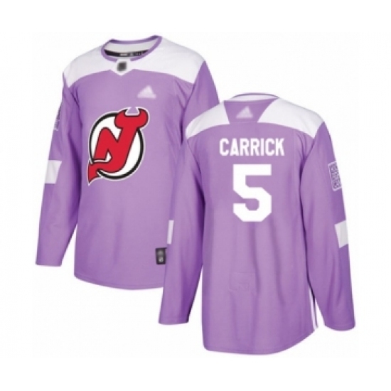 Men's New Jersey Devils #5 Connor Carrick Authentic Purple Fights Cancer Practice Hockey Jersey