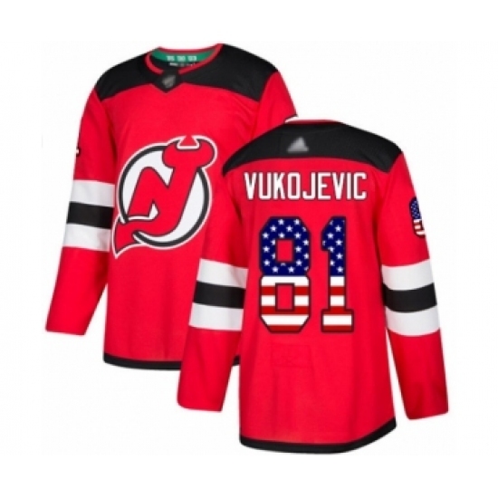 Men's New Jersey Devils #81 Michael Vukojevic Authentic Red USA Flag Fashion Hockey Jersey