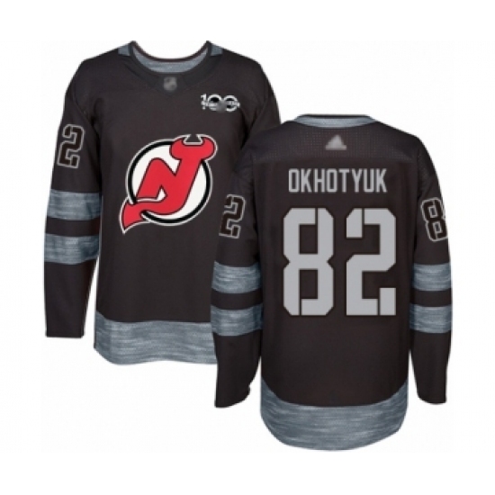 • Men's New Jersey Devils #82 Nikita Okhotyuk Authentic Black 1917-2017 100th Anniversary Hockey Jersey