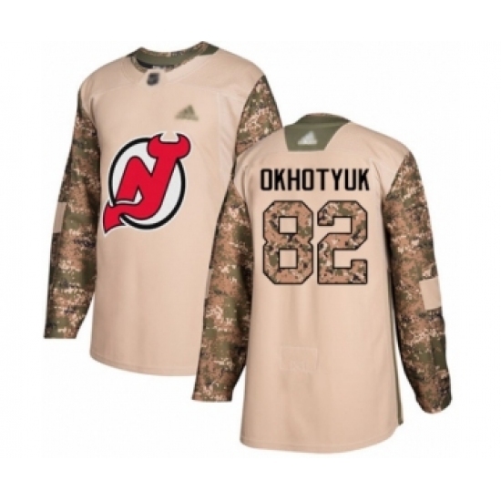 • Men's New Jersey Devils #82 Nikita Okhotyuk Authentic Camo Veterans Day Practice Hockey Jersey