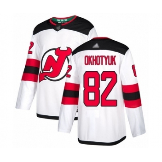 Men's New Jersey Devils #82 Nikita Okhotyuk Authentic White Away Hockey Jersey