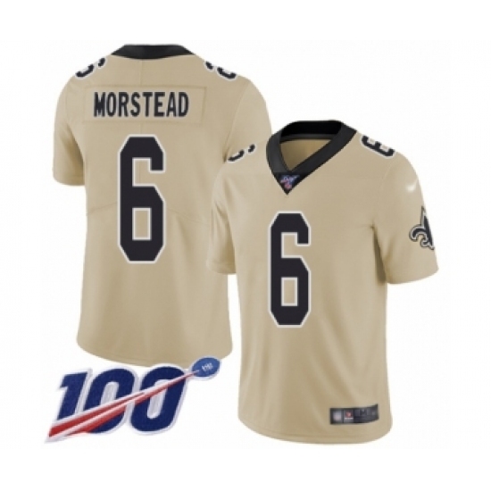 • Men's New Orleans Saints #6 Thomas Morstead Limited Gold Inverted Legend 100th Season Football Jersey