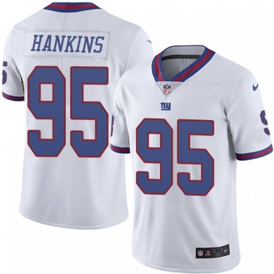 • Men's New York Giants #95 Johnathan Hankins Limited White Rush NFL Jersey
