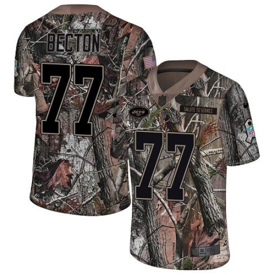 • Men's New York Jets #77 Mekhi Becton Camo Stitched Limited Rush Realtree Jersey