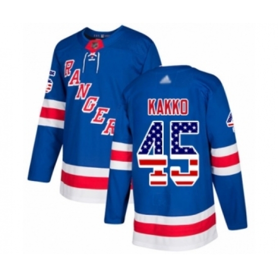 Men's New York Rangers #45 Kaapo Kakko Authentic Royal Blue USA Flag Fashion Hockey Jersey