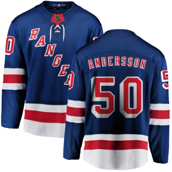 • Men's New York Rangers #50 Lias Andersson Fanatics Branded Royal Blue Home Breakaway NHL Jersey