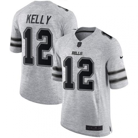 Men's Nike Buffalo Bills #12 Jim Kelly Gray Stitched NFL Limited Gridiron Gray II Jersey