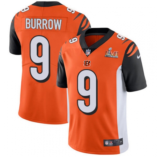 • Men's Nike Cincinnati Bengals #9 Joe Burrow Orange Alternate Super Bowl LVI Patch Stitched NFL Vapor Untouchable Limited Jersey