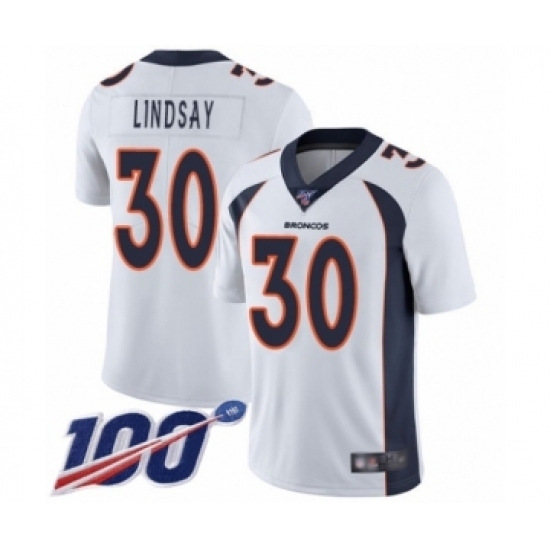 • Men's Nike Denver Broncos #30 Phillip Lindsay White Vapor Untouchable Limited Player 100th Season NFL Jersey