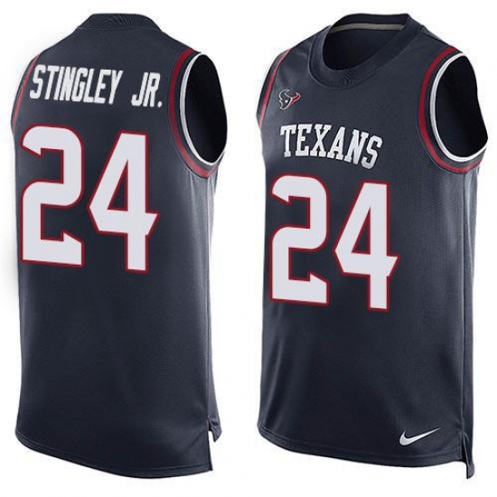 • Men's Nike Houston Texans #24 Derek Stingley Jr. Navy Blue Team Color Stitched NFL Limited Tank Top Jersey
