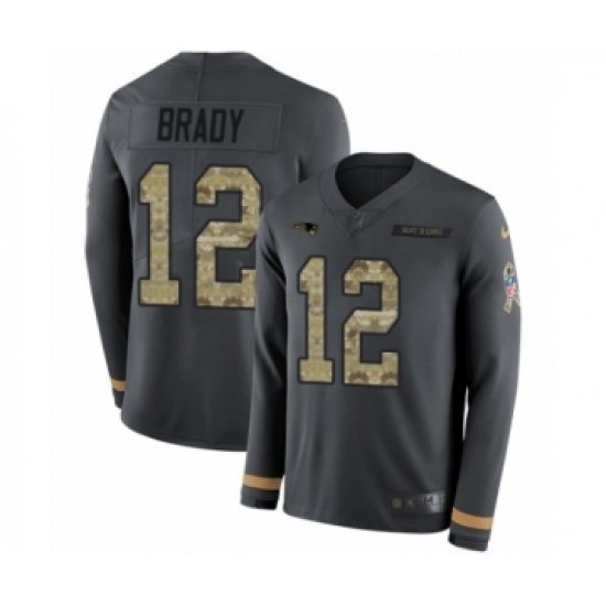 • Men's Nike New England Patriots #12 Tom Brady Limited Black Salute to Service Therma Long Sleeve NFL Jersey