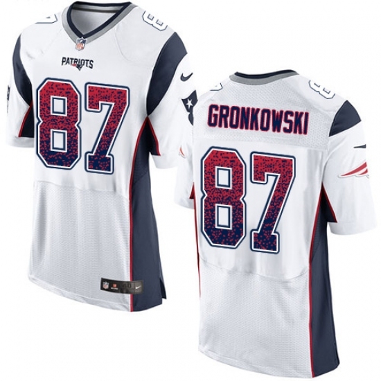 • Men's Nike New England Patriots #87 Rob Gronkowski Elite White Road Drift Fashion NFL Jersey