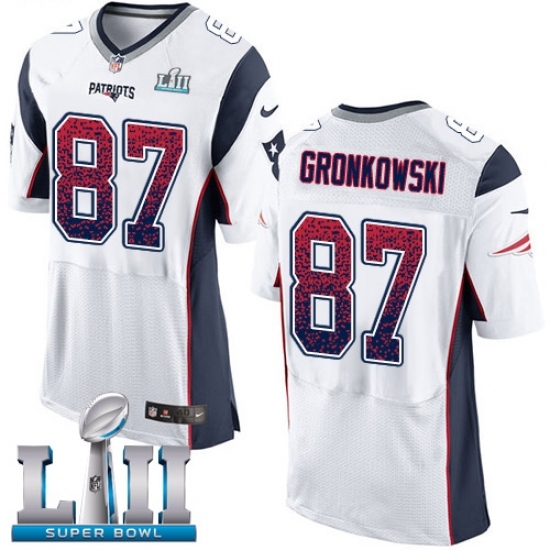 • Men's Nike New England Patriots #87 Rob Gronkowski Elite White Road Drift Fashion Super Bowl LII NFL Jersey