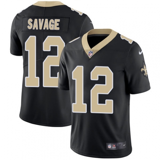 Men's Nike New Orleans Saints #12 Tom Savage Black Team Color Vapor Untouchable Limited Player NFL Jersey