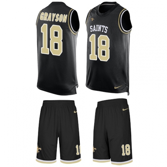 Men's Nike New Orleans Saints #18 Garrett Grayson Limited Black Tank Top Suit NFL Jersey