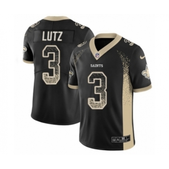 • Men's Nike New Orleans Saints #3 Wil Lutz Limited Black Rush Drift Fashion NFL Jersey