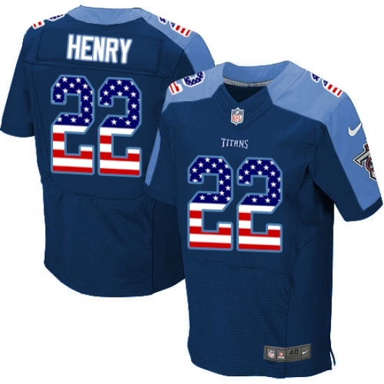 Men's Nike Tennessee Titans #22 Derrick Henry Elite Navy Blue Alternate USA Flag Fashion NFL Jersey