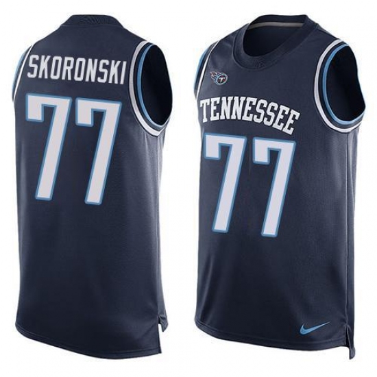 • Men's Nike Tennessee Titans #77 Peter Skoronski Navy Blue Team Color Stitched NFL Limited Tank Top Jersey