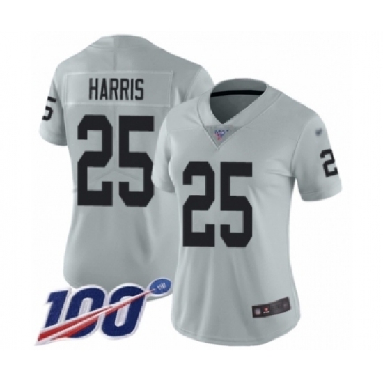 • Men's Oakland Raiders #25 Erik Harris Limited Silver Inverted Legend 100th Season Football Jersey
