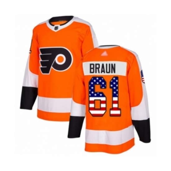 • Men's Philadelphia Flyers #61 Justin Braun Authentic Orange USA Flag Fashion Hockey Jersey
