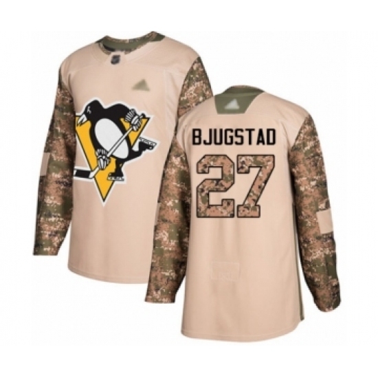 • Men's Pittsburgh Penguins #27 Nick Bjugstad Authentic Camo Veterans Day Practice Hockey Jersey