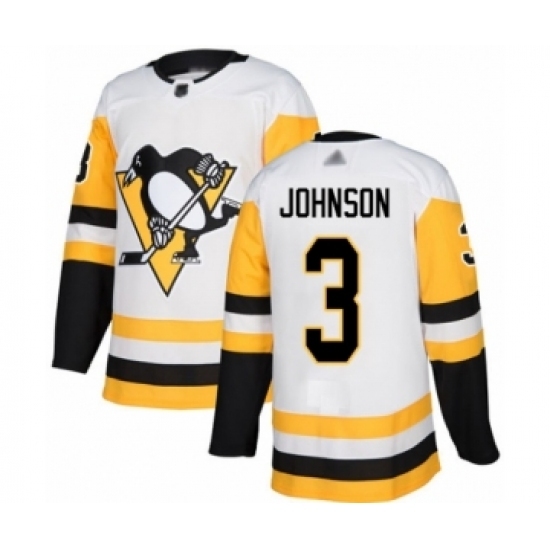 Men's Pittsburgh Penguins #3 Jack Johnson Authentic White Away Hockey Jersey