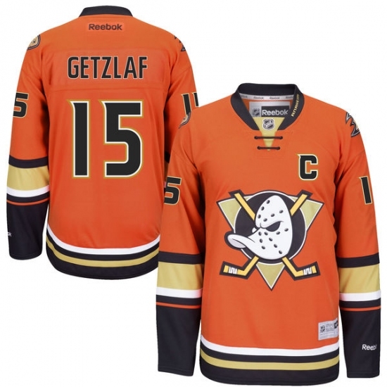 • Men's Reebok Anaheim Ducks #15 Ryan Getzlaf Authentic Orange Third NHL Jersey