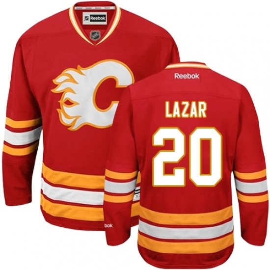 • Men's Reebok Calgary Flames #20 Curtis Lazar Authentic Red Third NHL Jersey