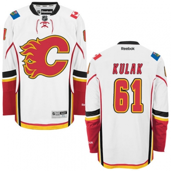 • Men's Reebok Calgary Flames #61 Brett Kulak Authentic White Away NHL Jersey