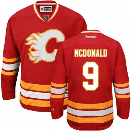 • Men's Reebok Calgary Flames #9 Lanny McDonald Authentic Red Third NHL Jersey